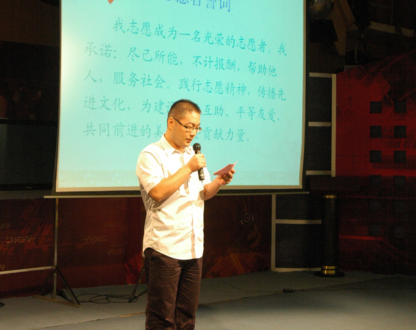 主持人带领全体做承诺,宣读志愿者誓词 |
