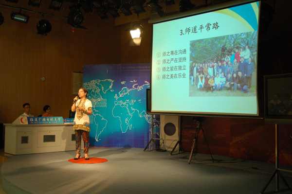 | 为进一步贯彻落实立德树人目标,促进教师良好的职业道德养成,10月10日下午教学管理处在学校演播厅举办了以“修师德,创先锋”为主题的道德大讲堂活动。党委副书记王振杰、副校长陈展虹,学校专、兼职教师及相关部门负责人参加了活动。 本次道德讲堂一共由6个环节组成,分别是“唱一首歌曲、看一段短片、诵一段经典、讲一个故事、作一番点评、送一份吉祥”。通过观看短片《最美教师张丽莉》,感受了张丽莉老师美在大爱、美在责任的高贵品质;通过诵一段《师说》经典,体会了“师者,所以传道受业解惑也”的含义,思考如何成为做一名合格的“传道受业解惑”的老师。在讲一个故事的环节里,赵容老师给大家讲述了她在电大从教30年的故事,并和大家一起分享了她对师道的感悟。 陈展虹副校长对活动进行了点评,他认为此次道德讲堂主题突出、内容丰富、形式活泼,具有很强的感染力,有很大的教育意义。并从四个方面讲解“师德”的含义。师德是教师的本质:教师不仅要有专业素养,还应有道德素养,不仅要有学术魅力,还应有多才多艺、“三商”(情商、智商、精神)兼顾所映射出的人格魅力;师德是伴随教师一生的伙伴:是需要在教学生涯中不断提升自身师德水平;师德是教师庄严的承诺:要恪守教师职业道德规范,在奉献和自身的不断进步中完成教师教书育人的使命和承诺;师德源于实践:要积极投身于身教重于言教的实践,为人师表,并通过传、帮、带和身边鲜活的事例促进师德水平的提高。最后,陈展虹给全体教师送上了“厚德善行,吉祥相伴”的美好祝福。